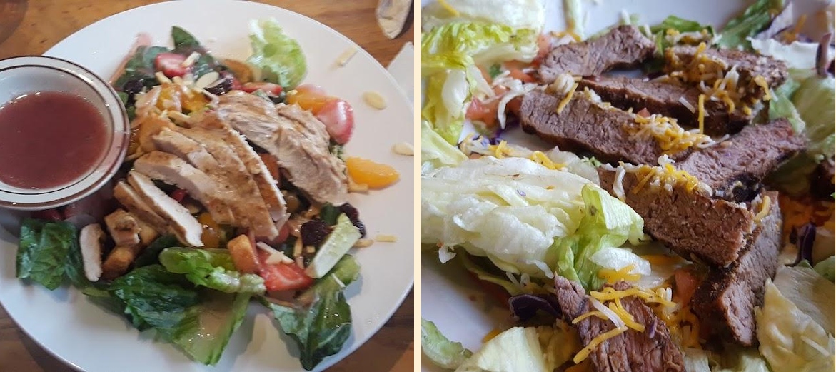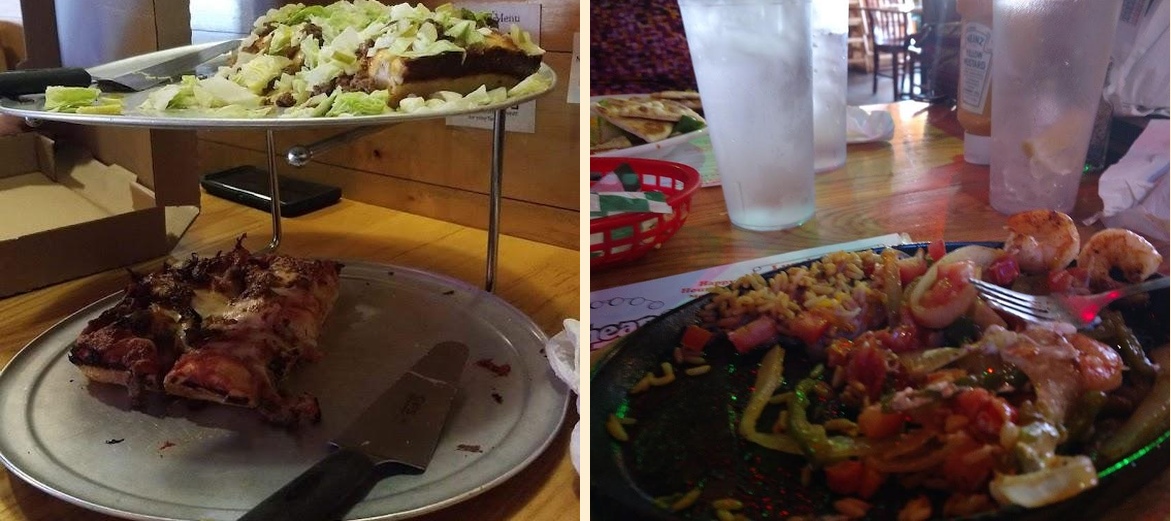 Try the Ribs Fall Off the Bone or the Seafood dishes. The burgers and pizzas are also highly recommended.