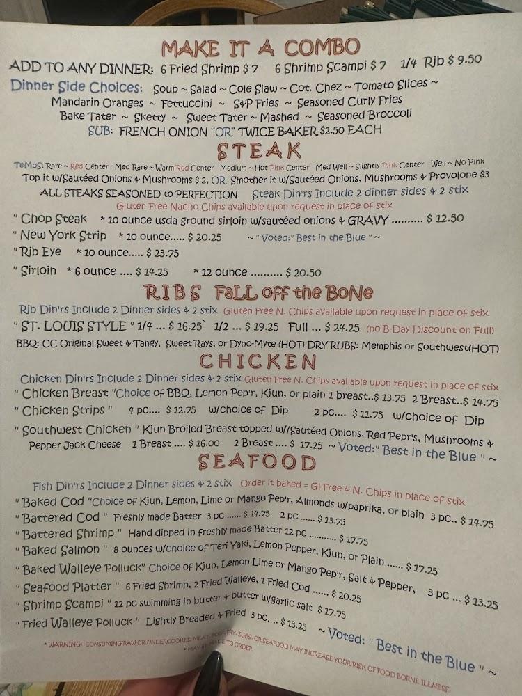 Cheap Charlie's menu boasts a wide selection, with over 250 dishes available. From American classics to Italian favorites, every craving is covered here. The highlight includes their famous ribs, freshly baked pizza, and delightful seafood options. Greeted by the smell of sizzling burgers, diners can’t resist.