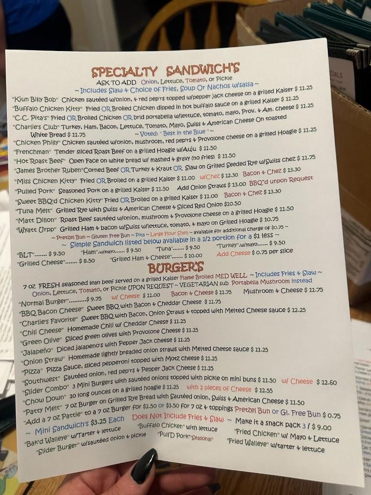 Don't forget to try the homemade ranch dip that pairs perfectly with appetizers. The versatility of the menu caters to any dietary preference, making it suitable for everyone. Additionally, the local specials enrich the dining experience, keeping it fresh each week. Overall, the selection and quality of food make Cheap Charlie's a local favorite.